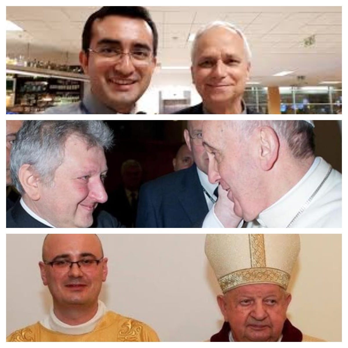 Msgr. Edgard Iván Rimaycuna Inga and Pope Leo XIV / Msgr. Battista Ricca and Pope Francis / Deacon Andrea Nardotto and Cardinal Stanisław Dzwisz