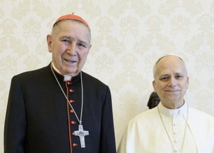 Accused predator retired Los Angeles Cardinal Roger Mahoney with Pope Leo XIV. According to Clean the Church, there are “21 certified abuse claims in Los Angeles Superior Court (JCCP5101) which name Mahony as the actual perpetrator of rape, forced oral copulation, and abuse of mostly immigrant teenage boys — claims that were buried in a $880 million settlement to avoid trial.”